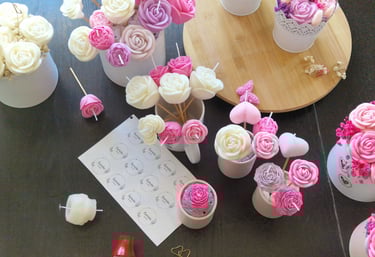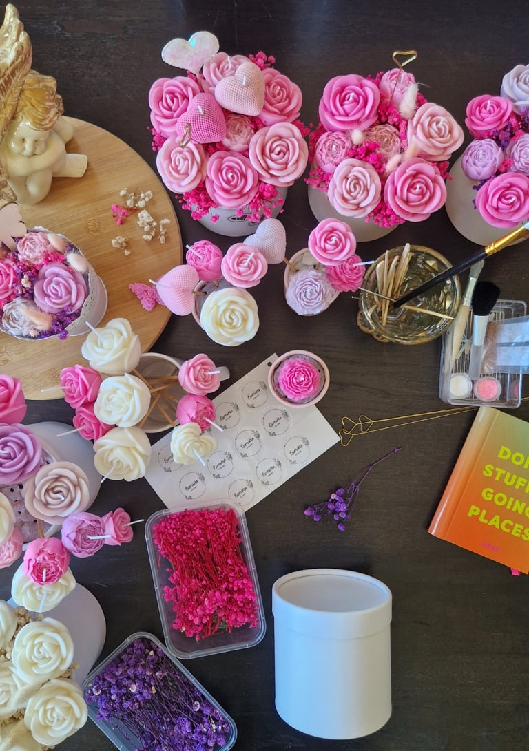 Criar velas artesanais personalizadas que transmitam emoção, beleza e significado, elevando momentos especiais através de peças únicas, sustentáveis e feitas com intenção.
